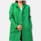 Women's Coat – Wool Mix – Relaxed Fit – Hood – Snap Button Closure – Mid-Thigh Length