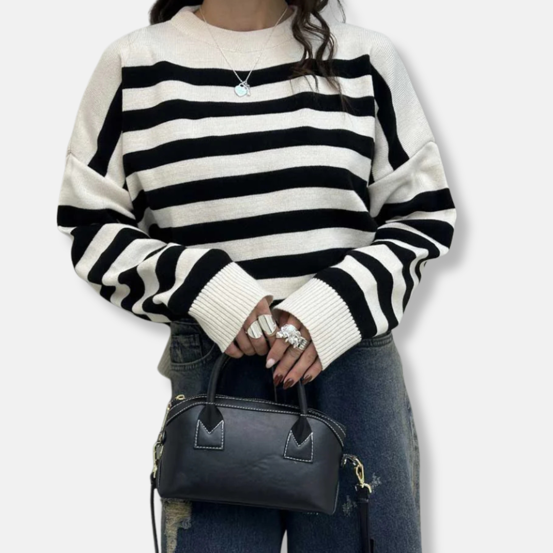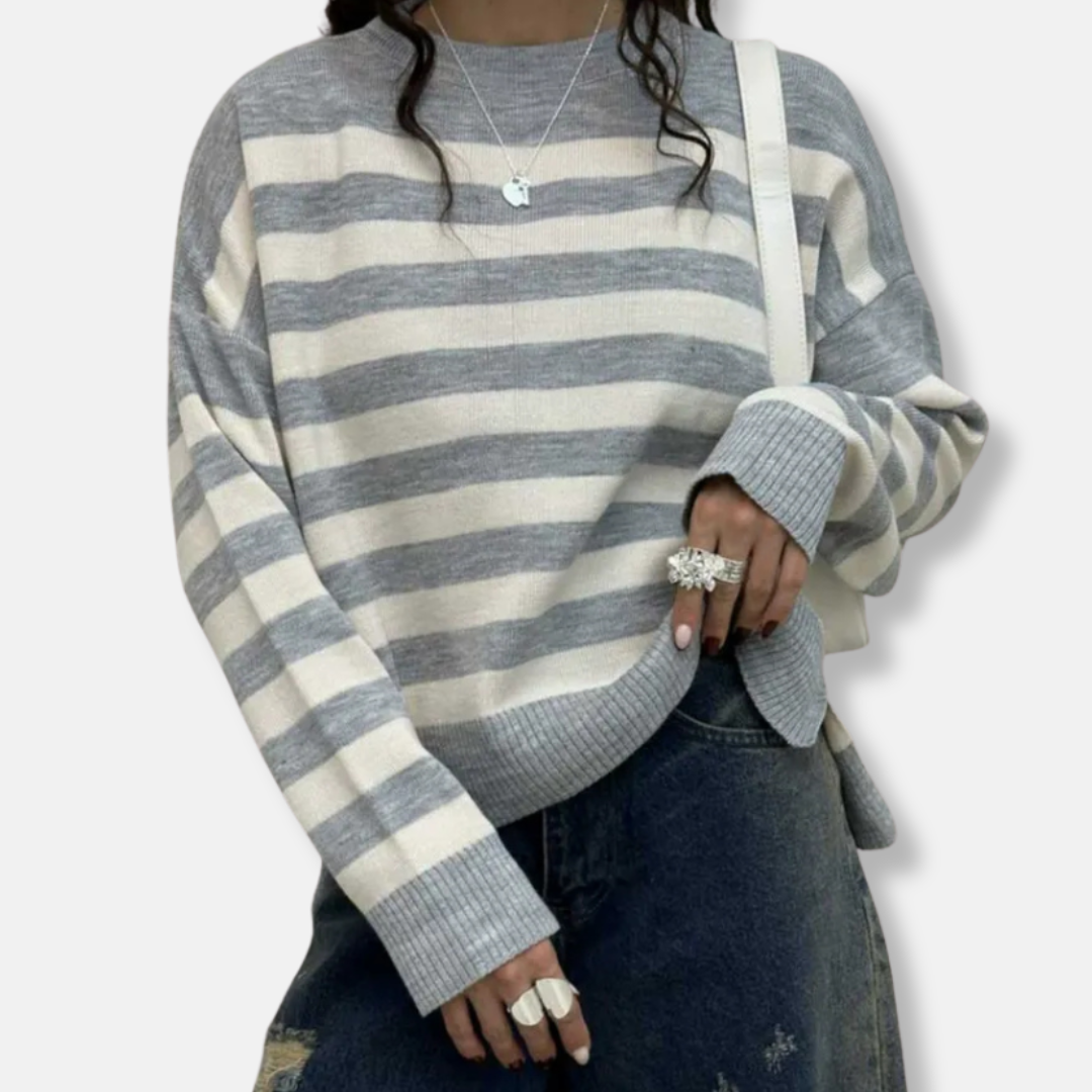 Women's Sweatshirt – Loose Fit – Striped Design – Round Neck – Ribbed Edges