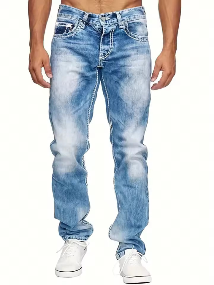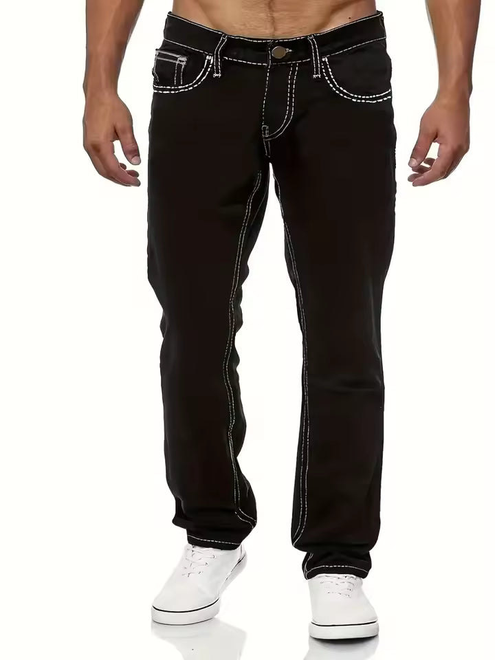 Men's Jeans – Straight Legs – Sturdy Denim – Contrast Stitching – Full Length