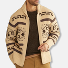 Men's Cardigan – Slim Fit – Wool Mix – Zipper Closure – Shawl Collar – Geometric Pattern