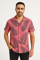 Men's Shirt Short Sleeve – Relaxed Fit – Cotton – Leaf Print – Casual Style