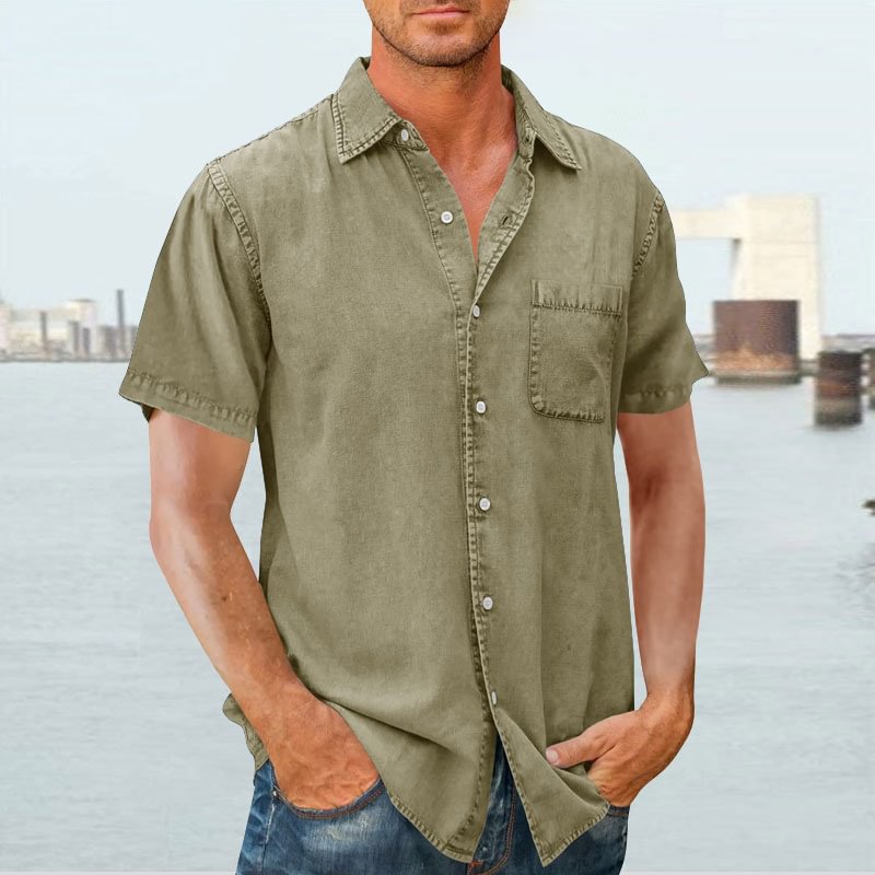 Men's Shirt Short Sleeve – Relaxed Fit – Breathable – Buttons – Chest Pocket