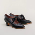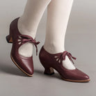 Ladies Lace-Up Shoes - Genuine Leather - Low Heel - Pointed Toe - Vintage Design With Cut-Outs