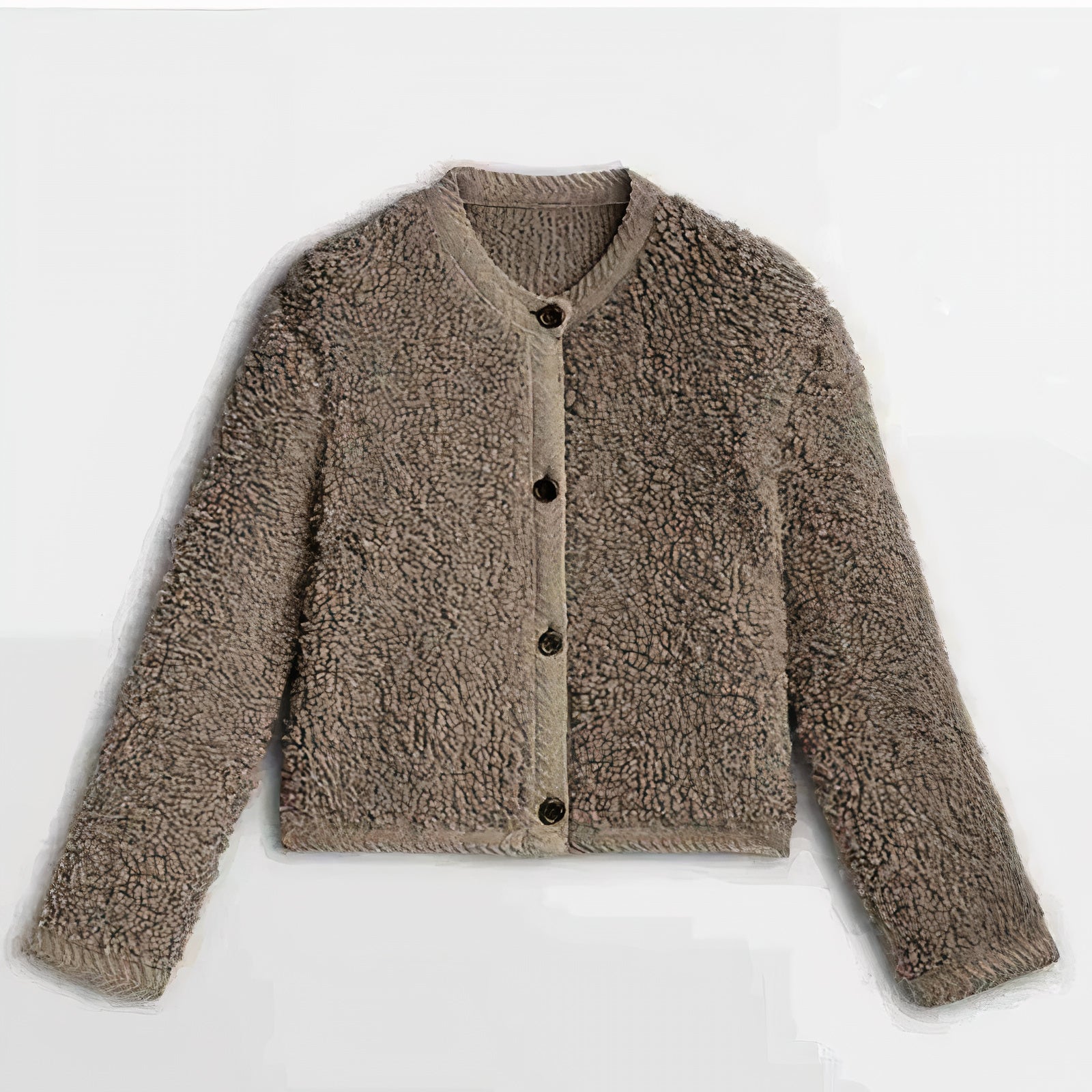 Ladies Cardigan – Bouclé Fabric – Round Neck – Button Closure – Comfortable Fit