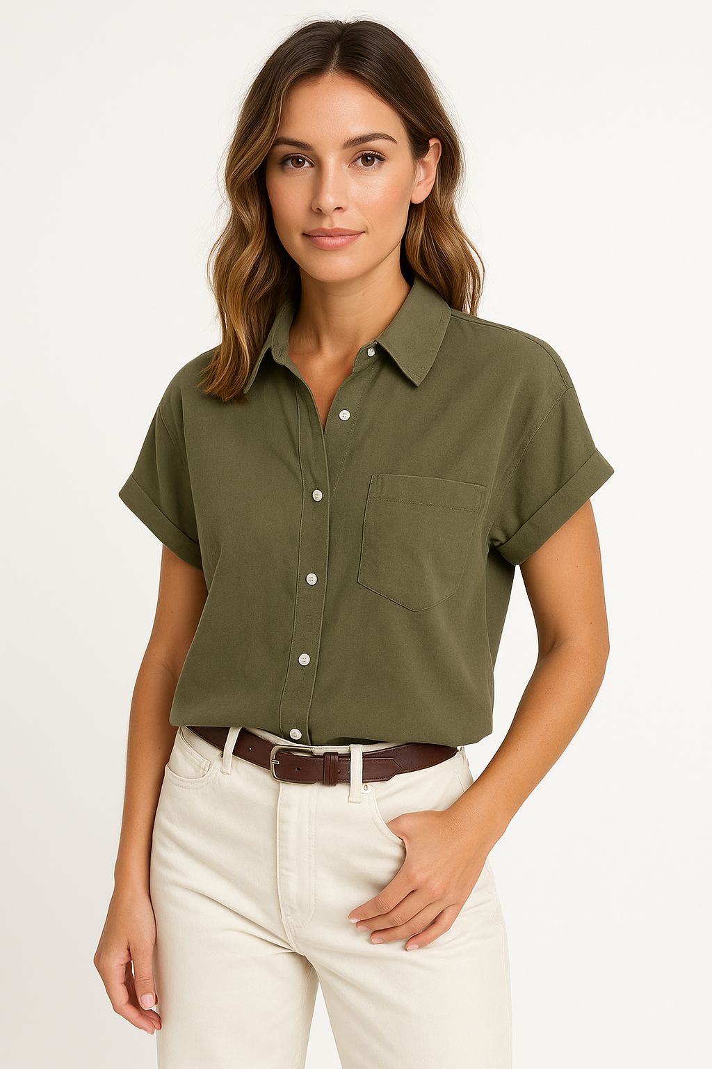 Women's Blouse – Cotton Linen – Relaxed Fit – Button Closure – Chest Pocket – Sleeveless