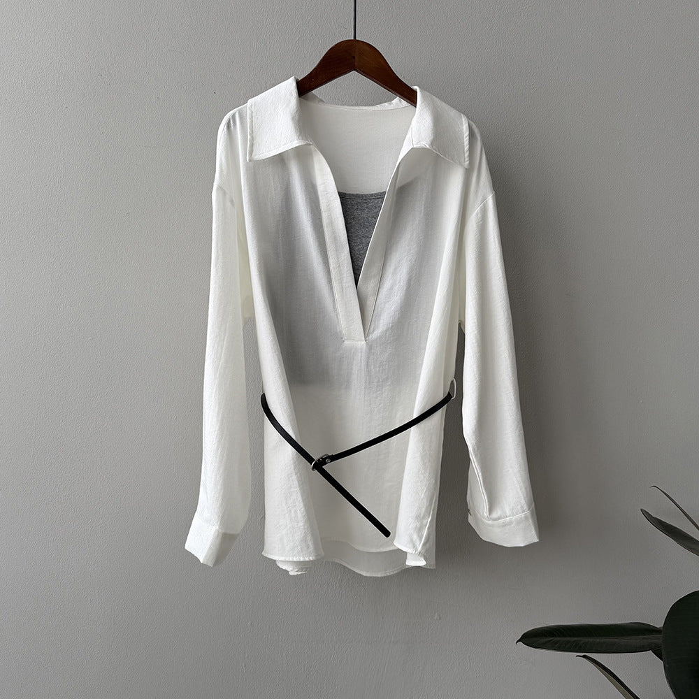 Ladies Blouse – Relaxed Fit – Lightweight – Long Sleeves – Notched Collar – Waist Belt