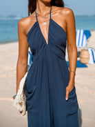 Ladies Jumpsuit – Halterneck – Deep V-neck – Relaxed Fit – Tapered Legs – Pockets