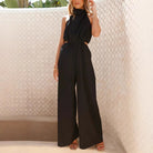 Women's Jumpsuit – Halter Neck – Wide Legs – Adjustable Waist – Sleeveless
