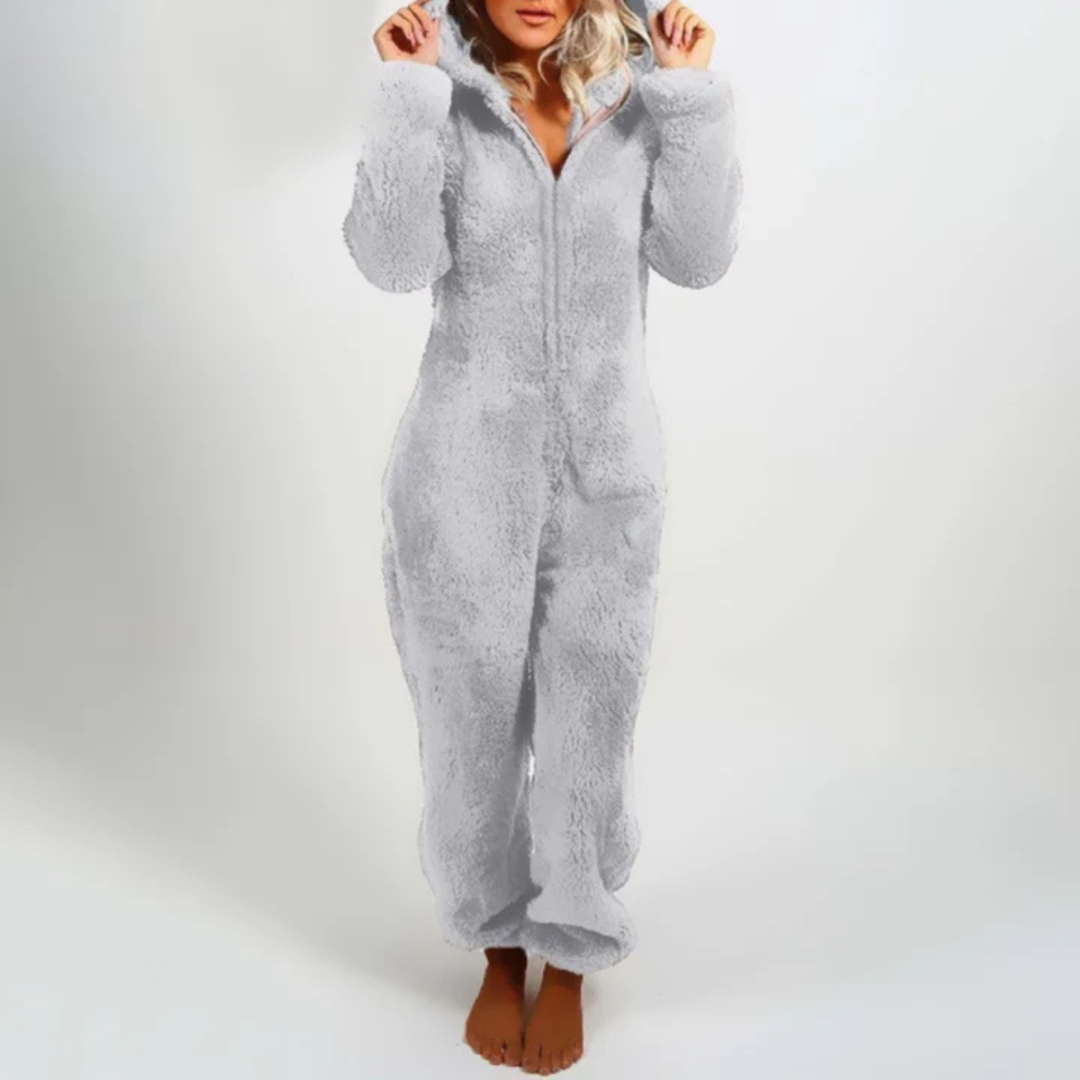 This women's winter jumpsuit with a hood offers both warmth and style. The practical design makes it ideal for the colder months, while the hood provides extra protection against the elements.