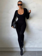 This long-sleeve jumpsuit offers a stylish and elegant appearance, perfect for both formal and casual occasions. The long-sleeve design provides extra coverage and warmth, while the sleek fit creates a refined, modern look.