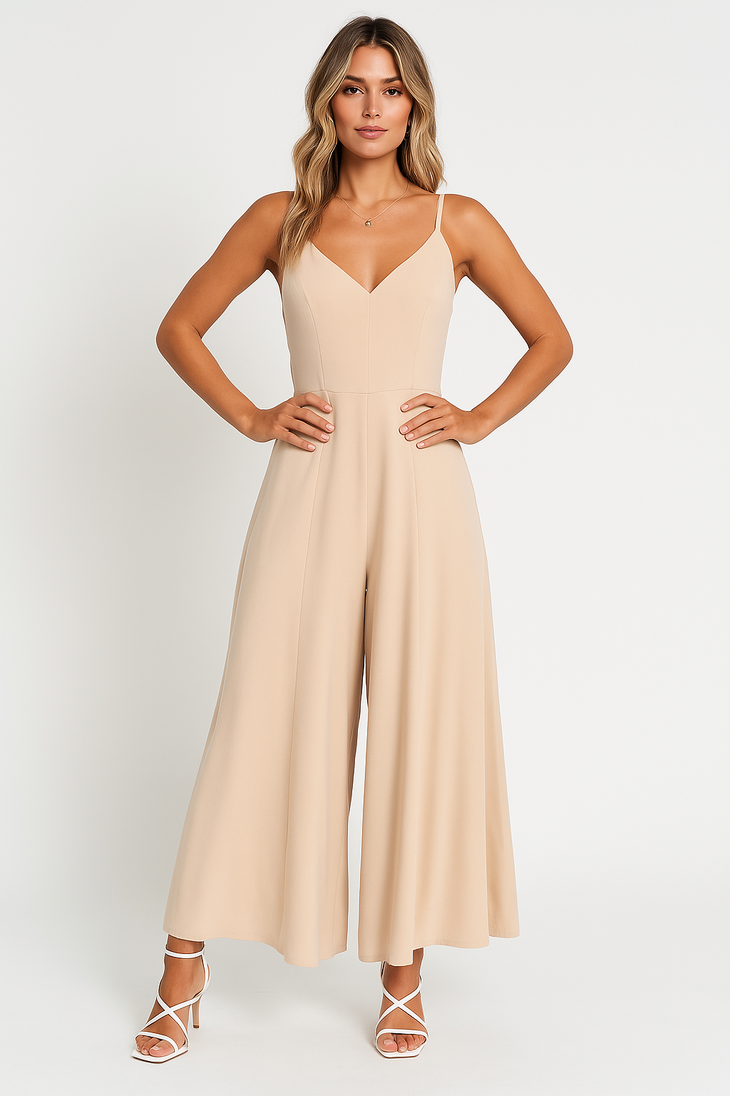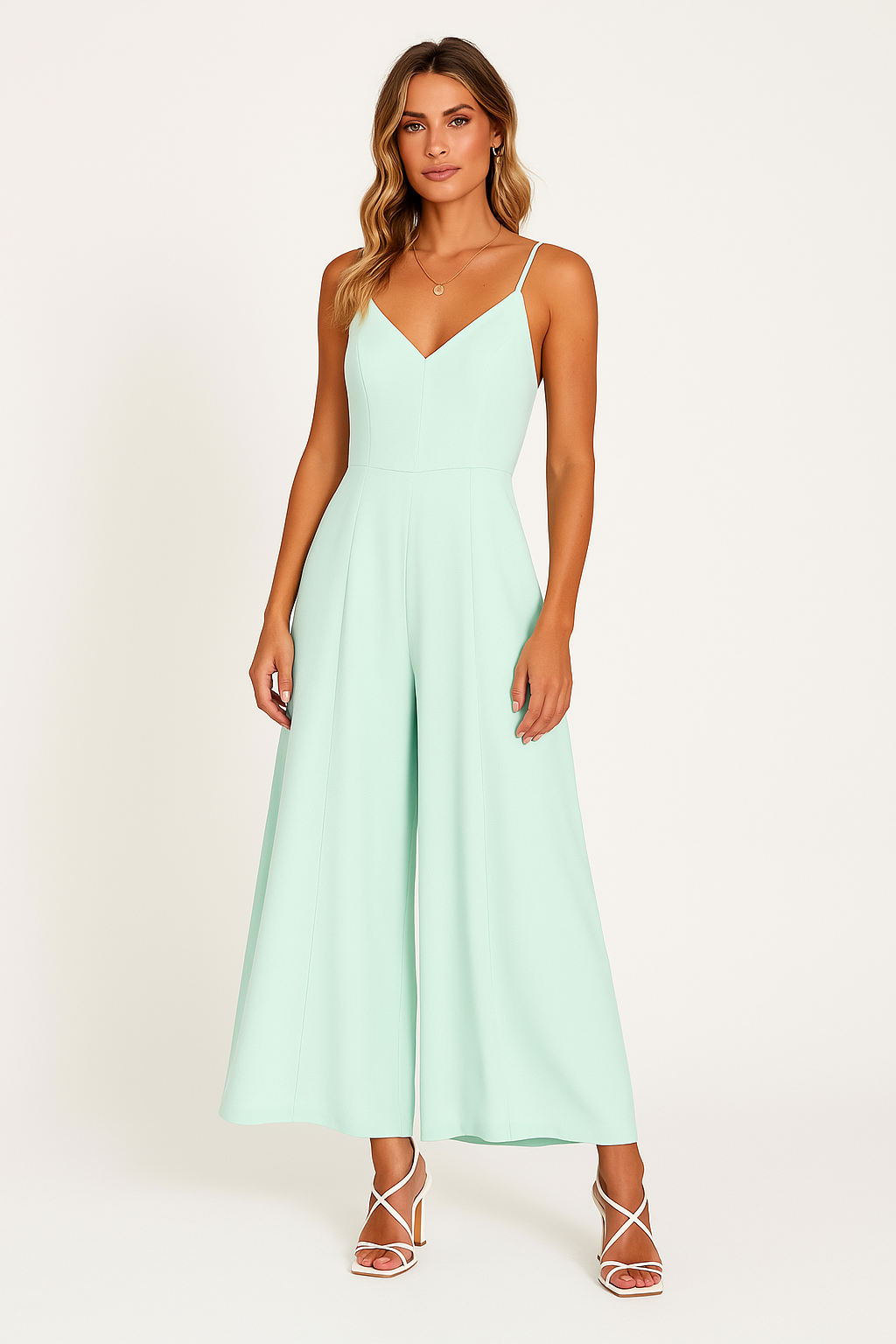 Women's Jumpsuit – V-Neck – Spaghetti Straps – Wide Legs – Relaxed Fit – Cinched Waist