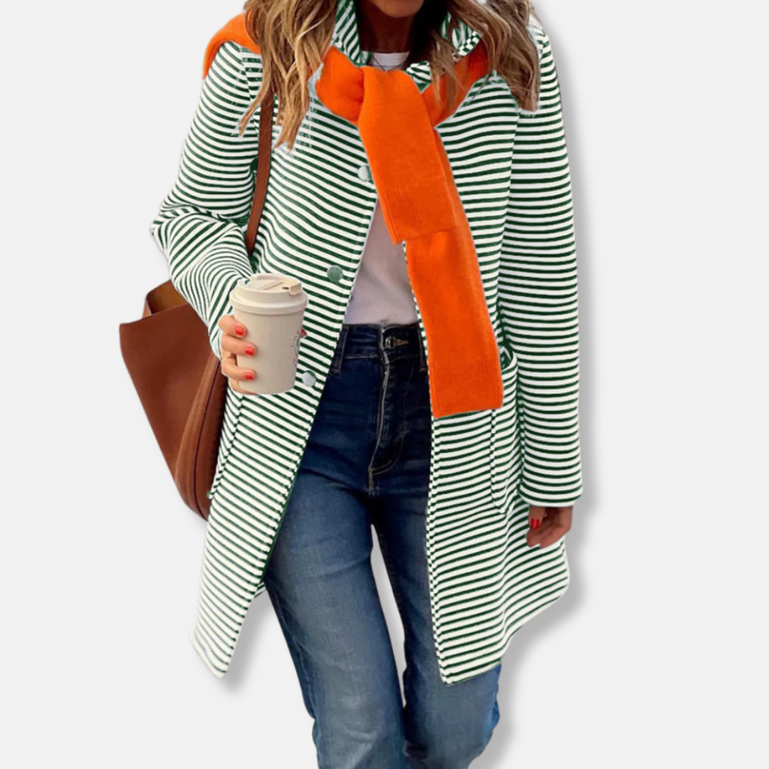 Women's Trenchcoat – Relaxed Fit – Double-breasted – Striped – Mid-length – Classic Model