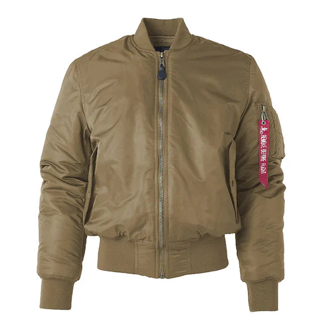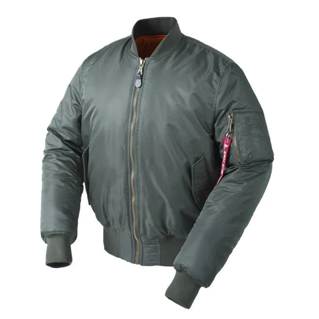 - Design: Classic bomber style with ribbed collar and cuffs, functional sleeve pocket with zipper